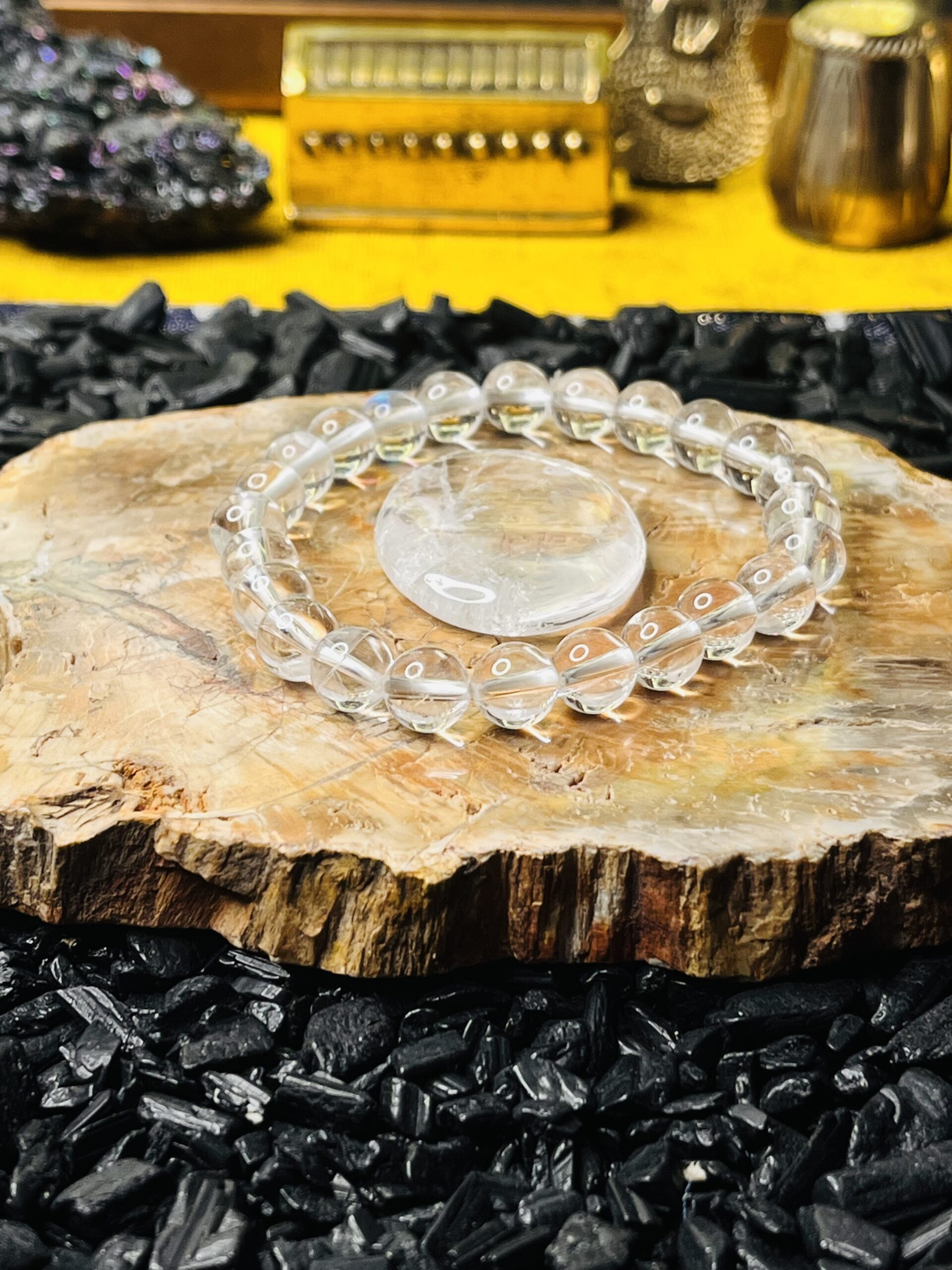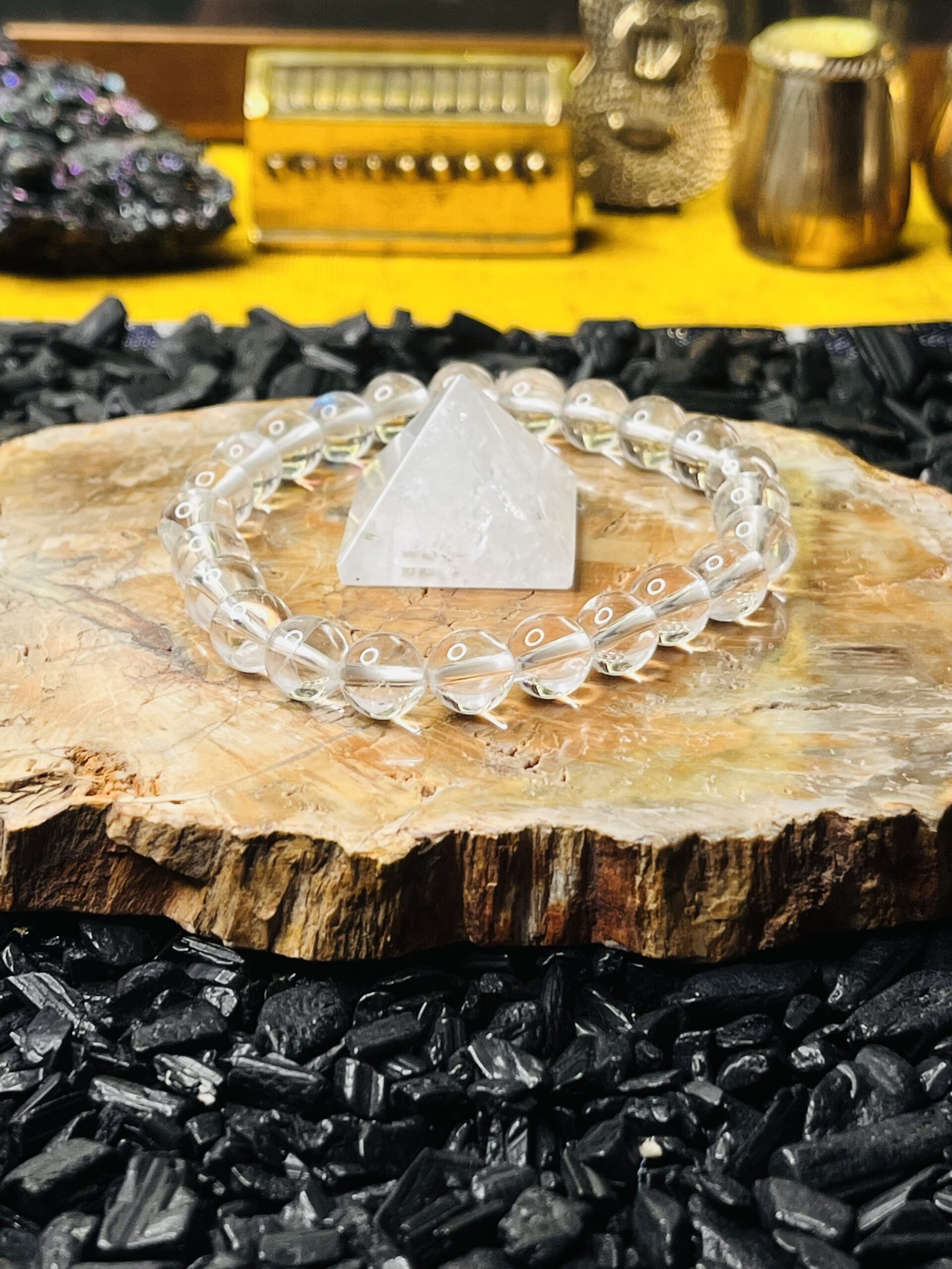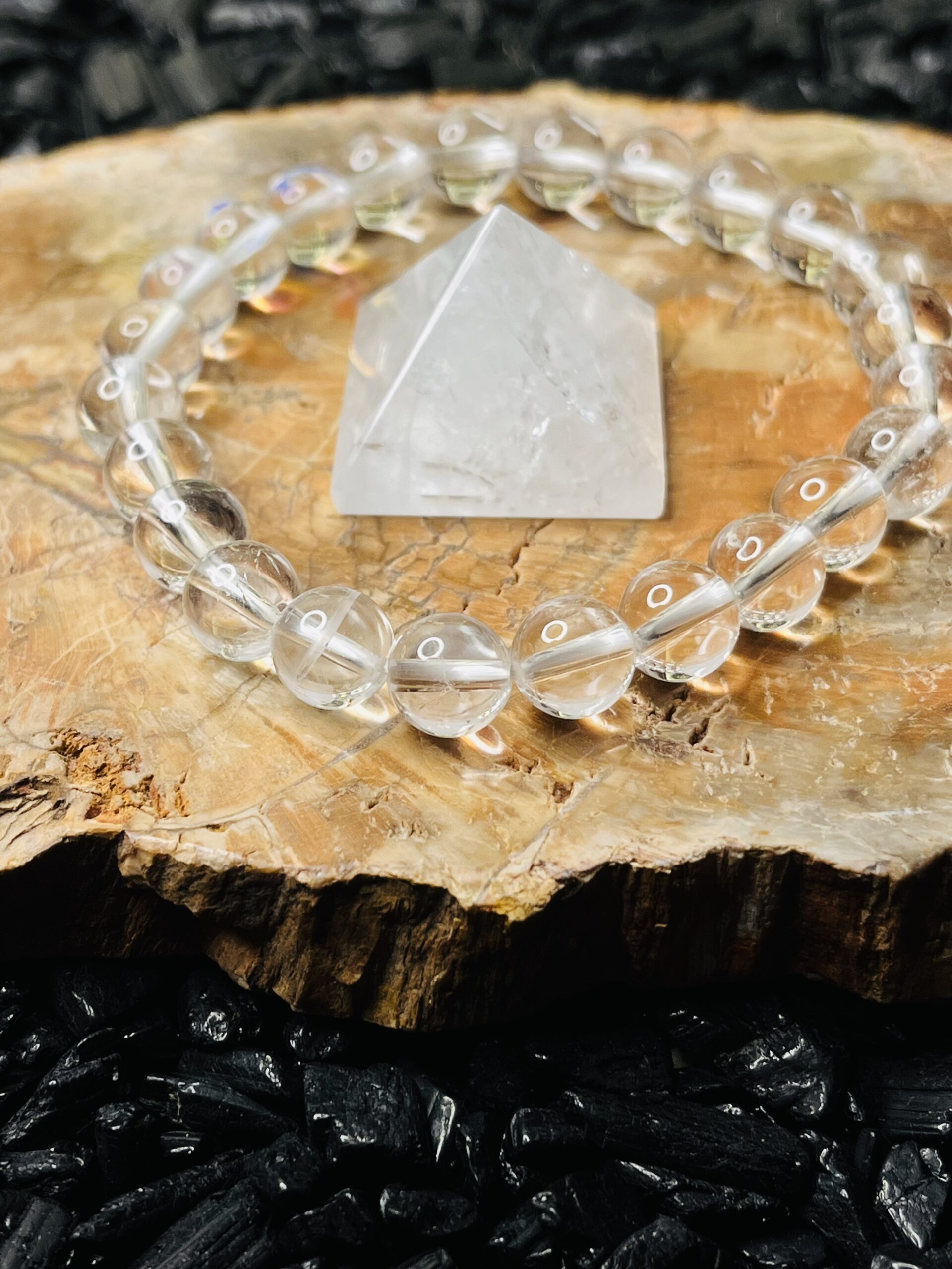 Our Radiant Clear Quartz Bracelet features an exquisite arrangement of ethically sourced clear quartz crystals, known for their powerful metaphysical properties. Each stone is hand-selected for its clarity and brilliance, creating a stunning piece that not only enhances your style but also promotes healing and balance. The elastic design ensures a comfortable fit for all wrist sizes, making it perfect for daily wear or special occasions. Embrace the energy of clear quartz and elevate your spirit with this elegant accessory.