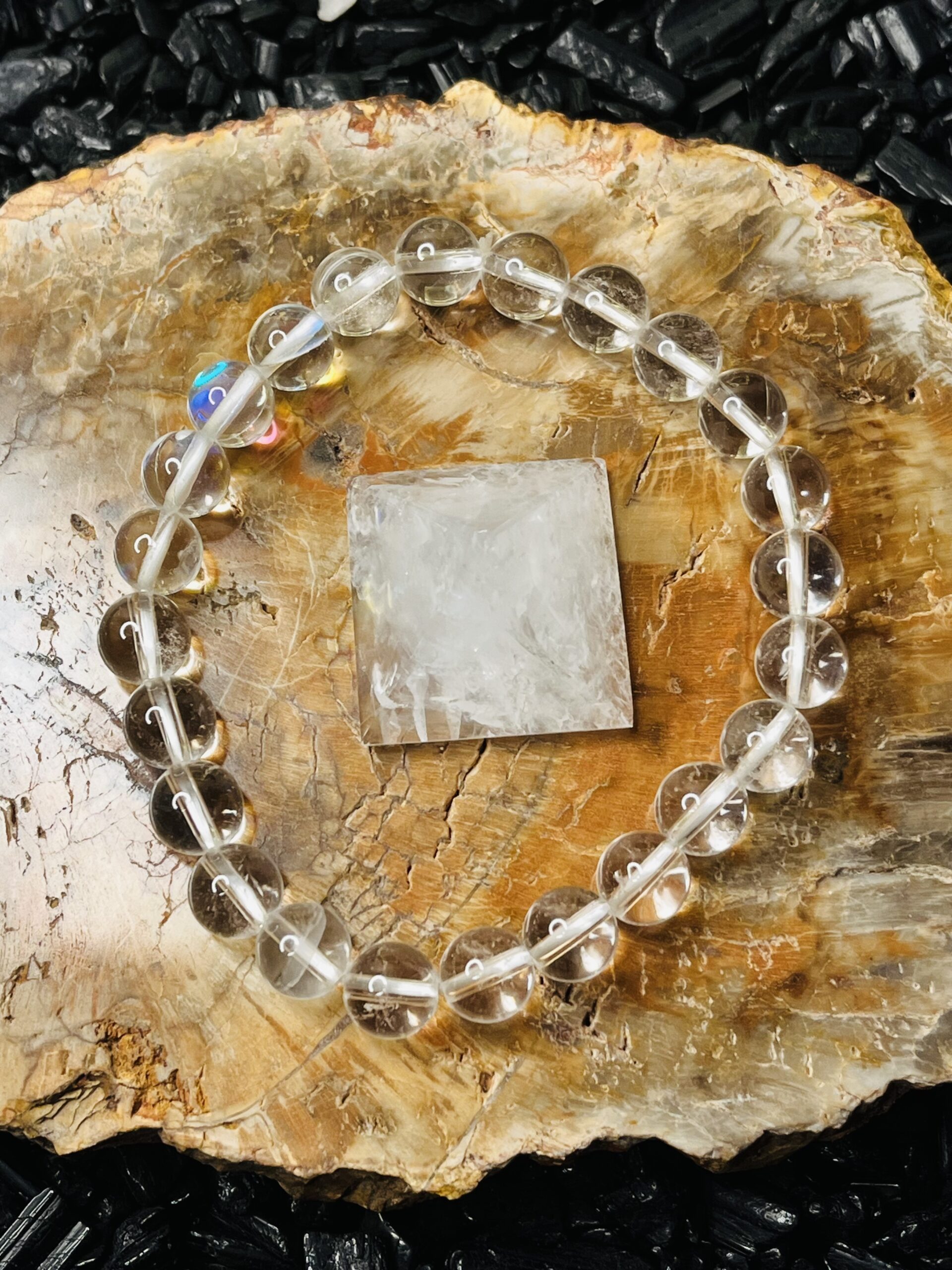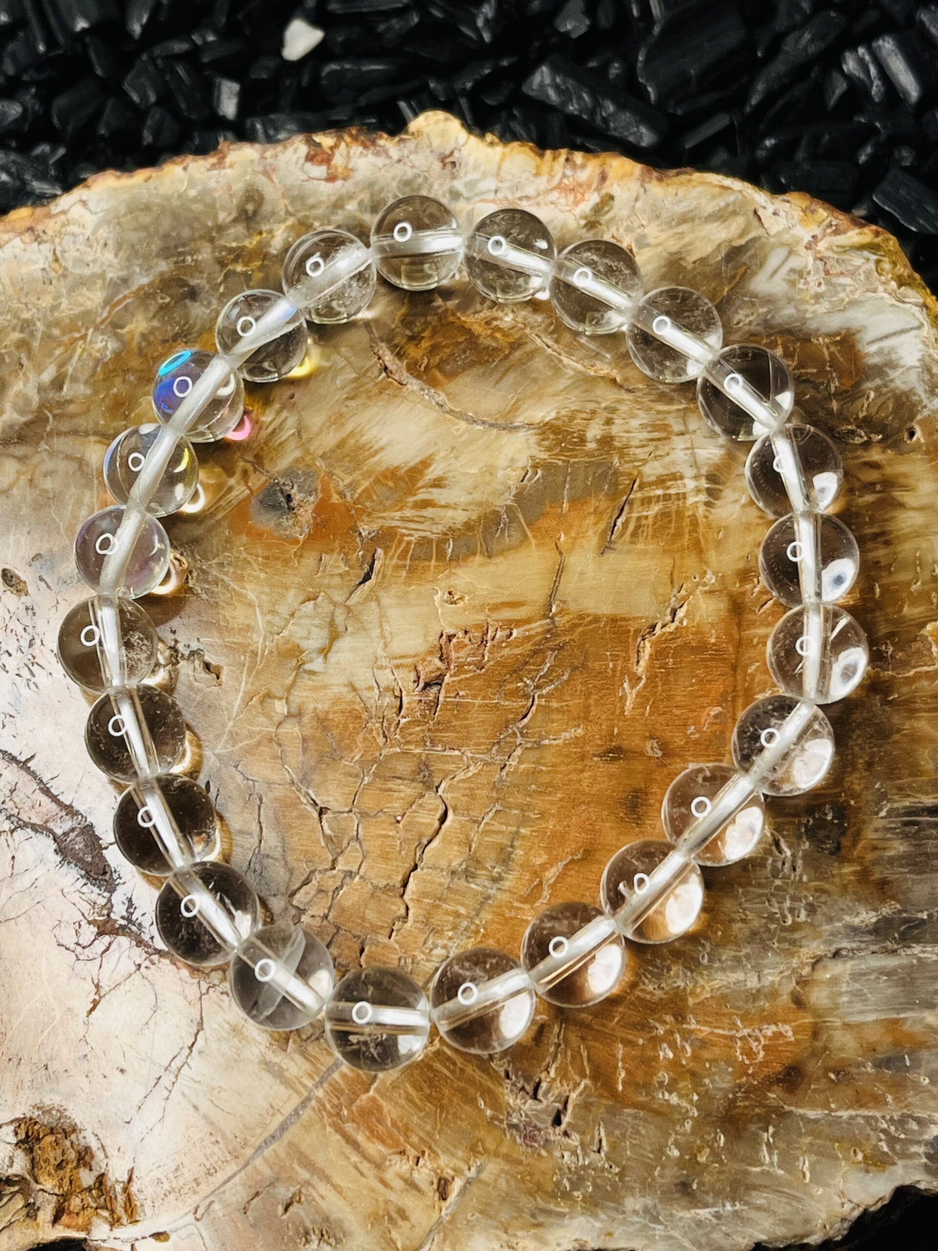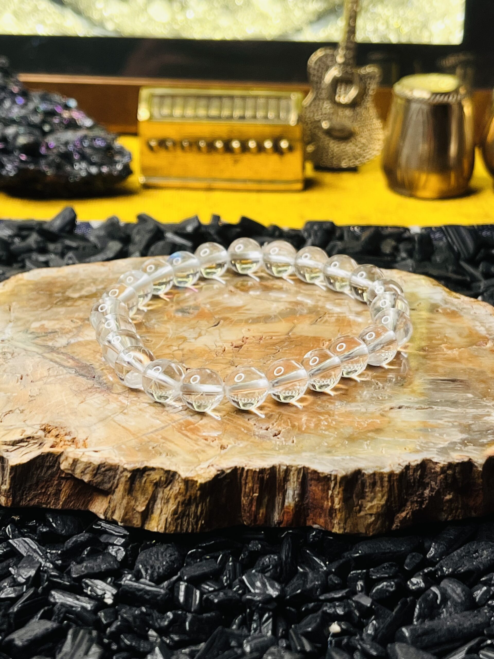 Our Radiant Clear Quartz Bracelet features an exquisite arrangement of ethically sourced clear quartz crystals, known for their powerful metaphysical properties. Each stone is hand-selected for its clarity and brilliance, creating a stunning piece that not only enhances your style but also promotes healing and balance. The elastic design ensures a comfortable fit for all wrist sizes, making it perfect for daily wear or special occasions. Embrace the energy of clear quartz and elevate your spirit with this elegant accessory.