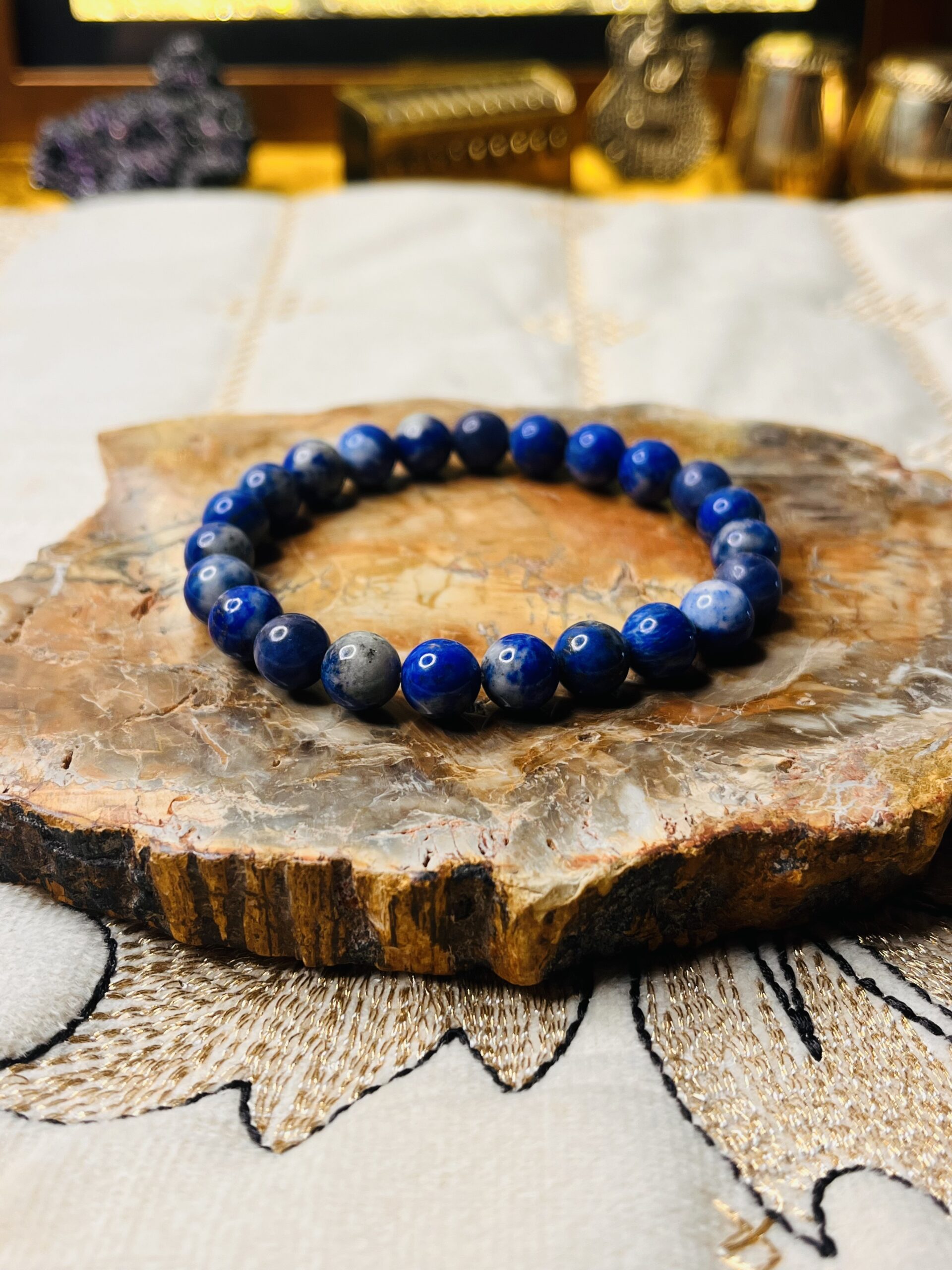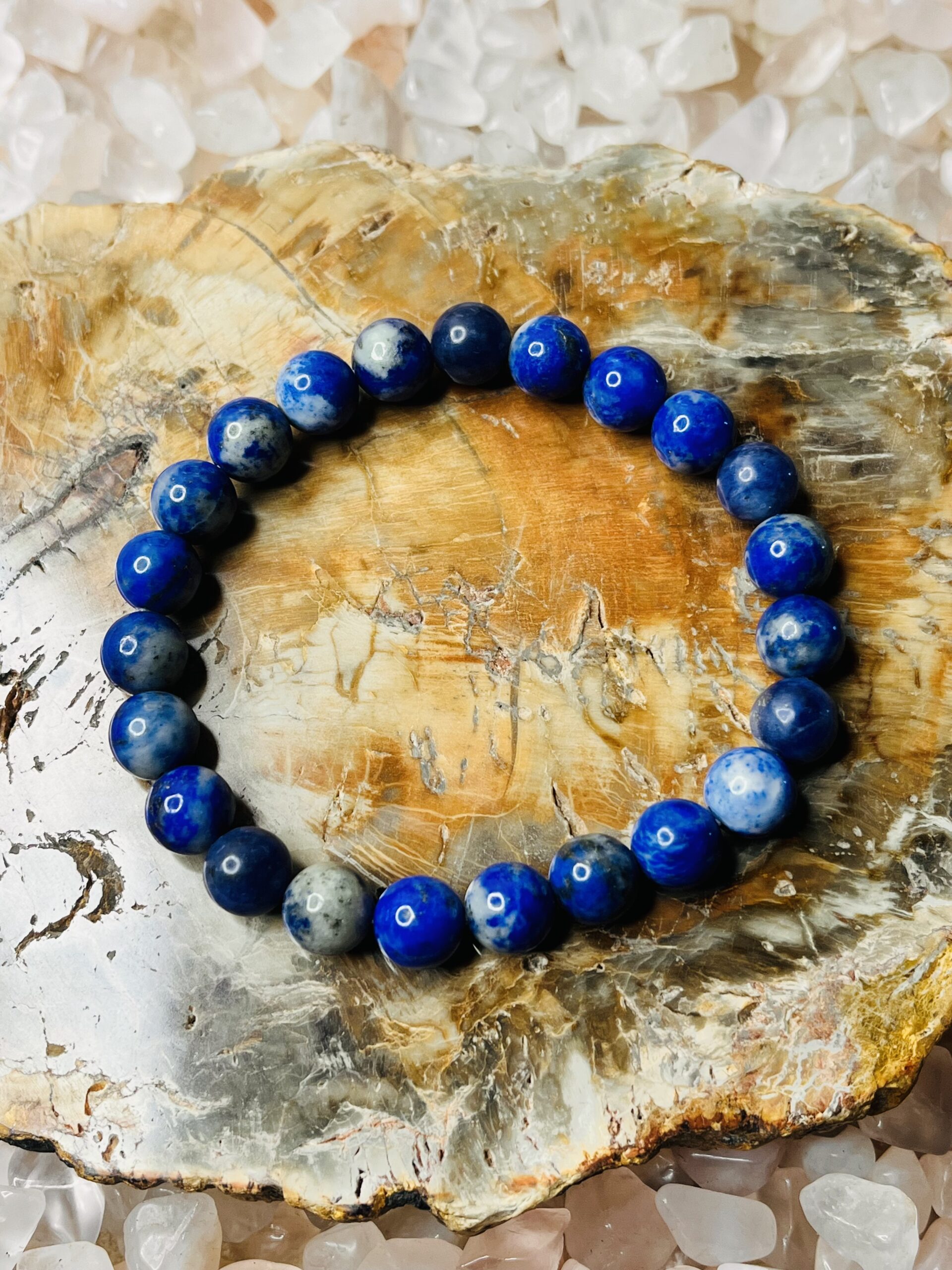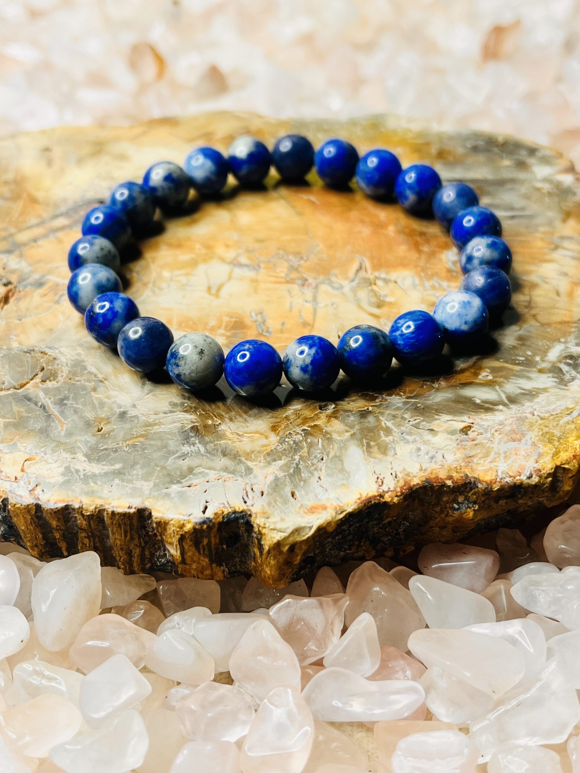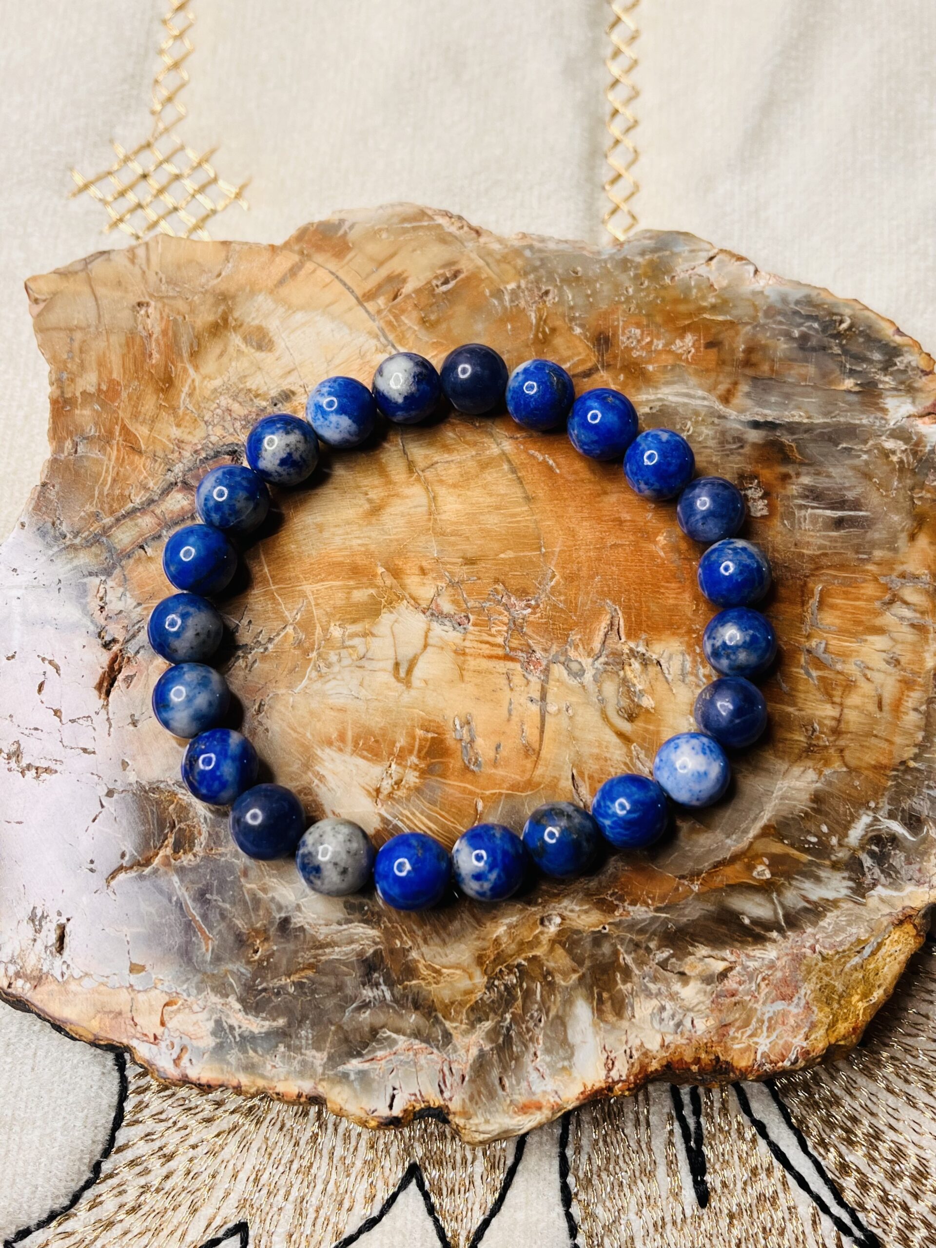 Introducing the stunning sodalite bracelet, a perfect blend of fashion and natural elegance. Crafted from genuine sodalite stones, this bracelet adds a touch of sophistication to any outfit. With its rich blue tones and unique patterns, each piece is a one-of-a-kind accessory that stands out while providing a sense of calm and tranquility.